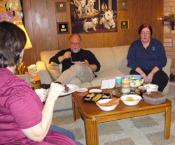 Some of the guests eating and visiting after evaluating the puppies. A good time was had by all.